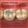 Silver amalgam dental fillings have been the most popularly used materials in dentistry for over 75 years. It is easy to use, strong, durable and the least expensive material. An amalgam filling can last 10, 20, and 30 years or even more. It has a proven track record, but the silver, grey-black colour displeases many patients. Mercury is part of the amalgam formula and there has been controversy as to whether the mercury is a health hazard risk. There has been no traditional scientific evidence of a health hazard risk.